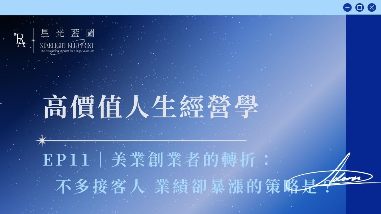 《高價值人生經營學—從覺醒到開創的創業地圖》是專為講師、顧問、身心靈老師與美業經營者打造的節目,帶你用品牌力與影響力,實現高價值人生與事業升級