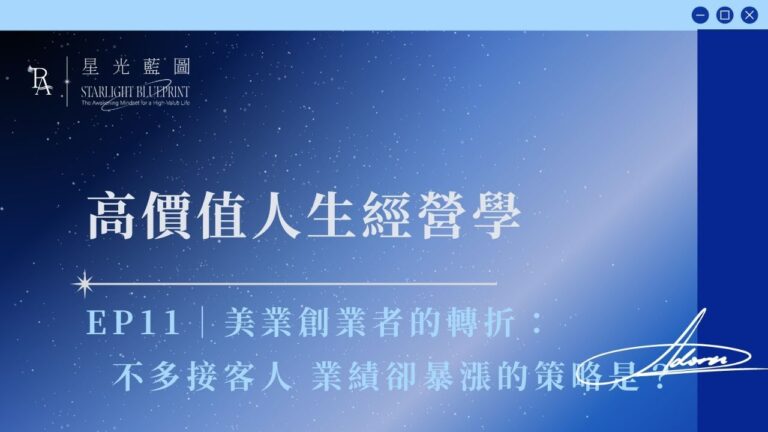 美業創業者的轉折:不多接客人,業績卻暴漲的策略是?-EP11《高價值人生經營學》 為什麼你不可能永遠靠一雙手賺錢? 許多美業創業者都有相同的煩惱:明明技術越來越好,卻越做越累、越努力越焦慮 因為美業的核 閱讀全文 »