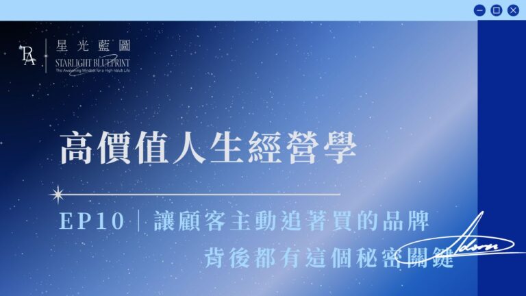 讓顧客主動追著買的品牌,背後都有這個秘密關鍵-EP10《高價值人生經營學》 為什麼有些品牌什麼都沒推銷,卻能讓人心甘情願掏錢? 因為他們不是在賣產品,而是在賣一種「狀態」這個狀態,是客戶理想中「成 閱讀全文 »